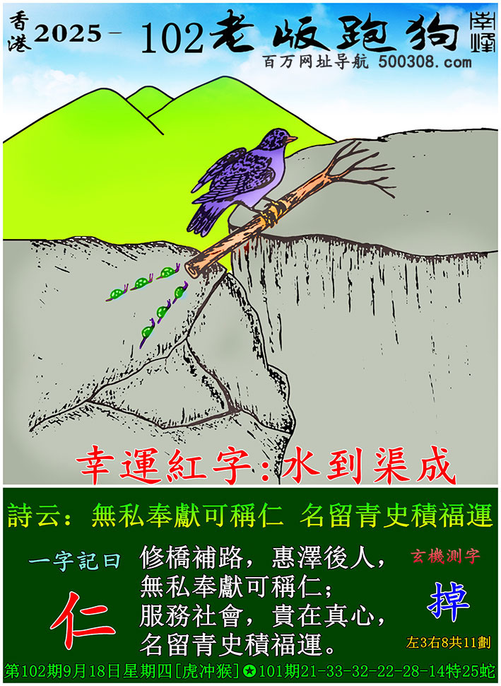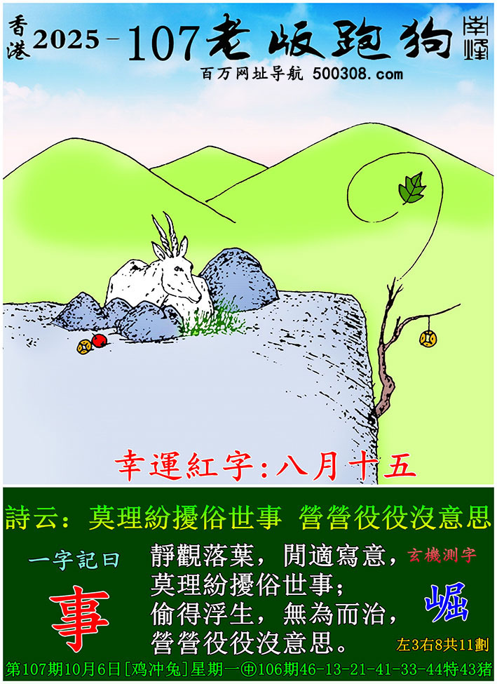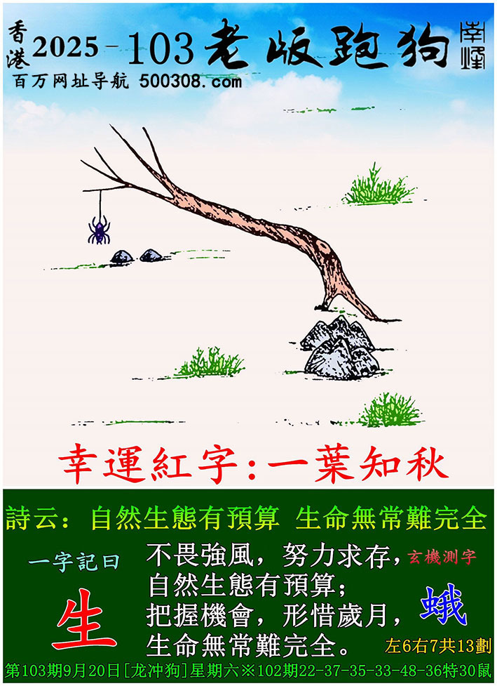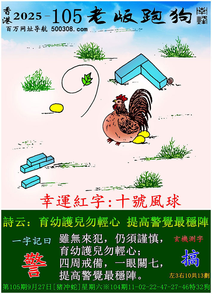 108期老版跑狗一字記之曰:【青】